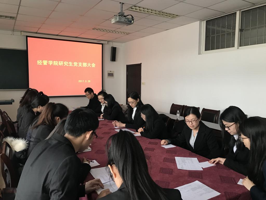 研究生党支部在经管415室召开支部大会,会议由韦德国际