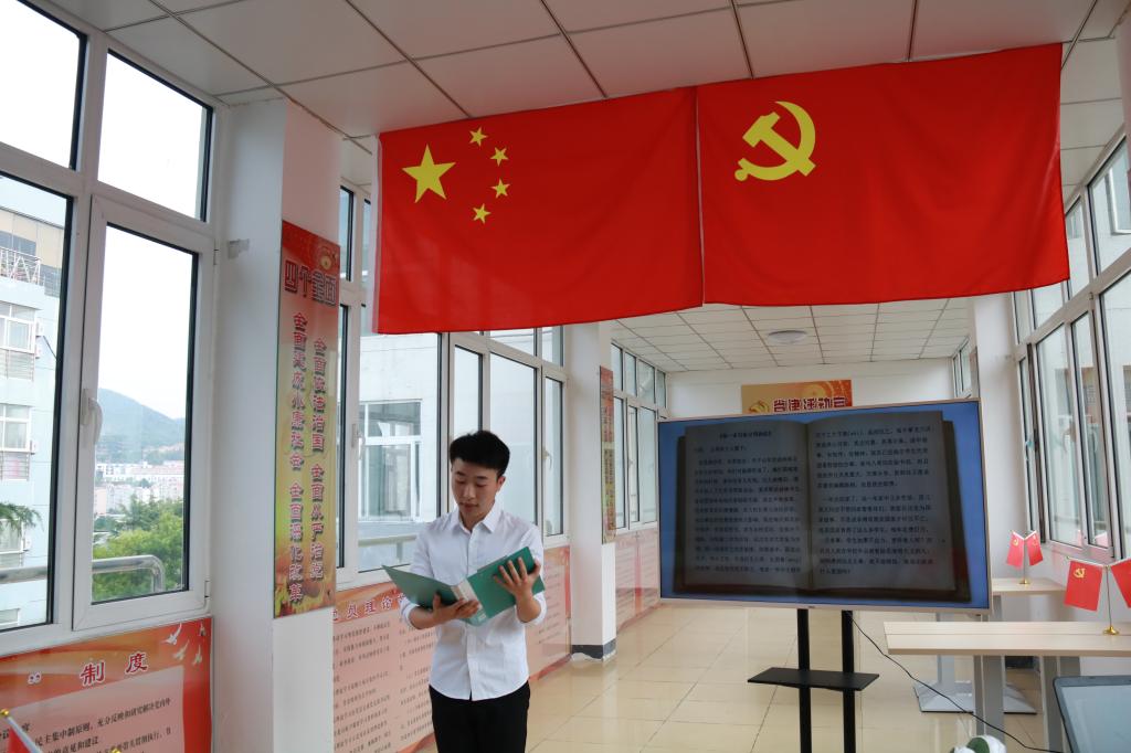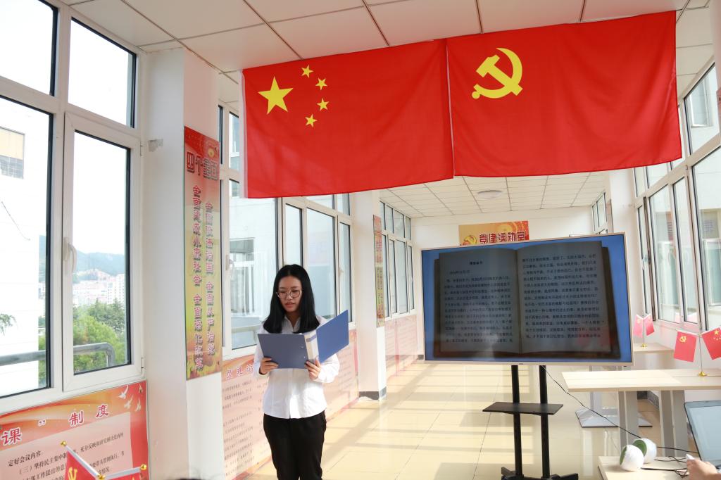 党总支在“领航”党建活动室组织开展了“两学一做红色朗读——一党员一段文”第四期活动,本科生党支部全体党员参加。