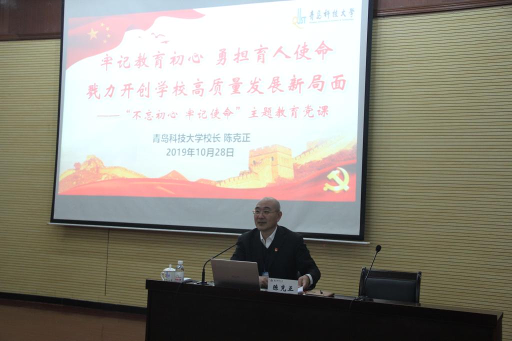 10月28日下午4点,根据学校党委“不忘初心、牢记使命”主题教育实施方案,校长陈克正主讲的“‘牢记教育初心 勇担育人使命’,戮力开创学校高质量发展新局面”主题党课在第一报告厅进行。发展规划处、科技处、人文社科处、合作发展处、高密校区、韦德国际