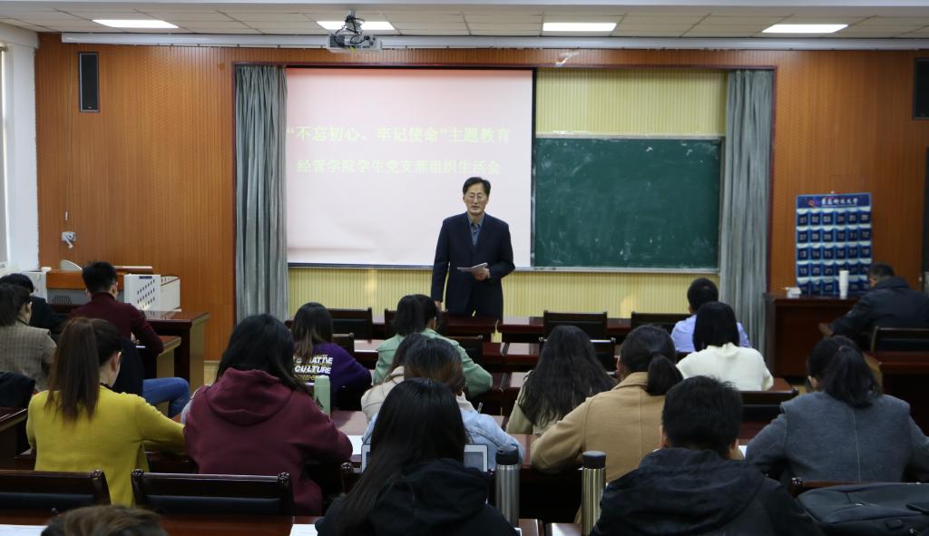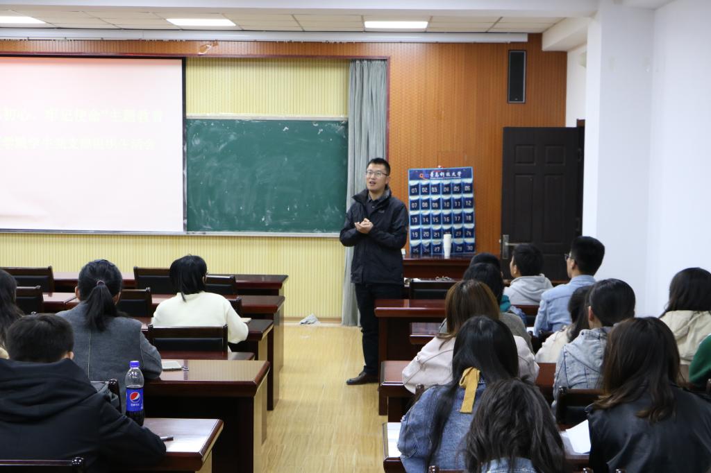 学生党支部于经管楼419室开展了“不忘初心,牢记使命”主题教育组织生活会。党总支书记李德成,党总支副书记、副院长刘跃宁,19级辅导员孙一君及全体学生党员参加了本次会议,会议由孙一君主持。