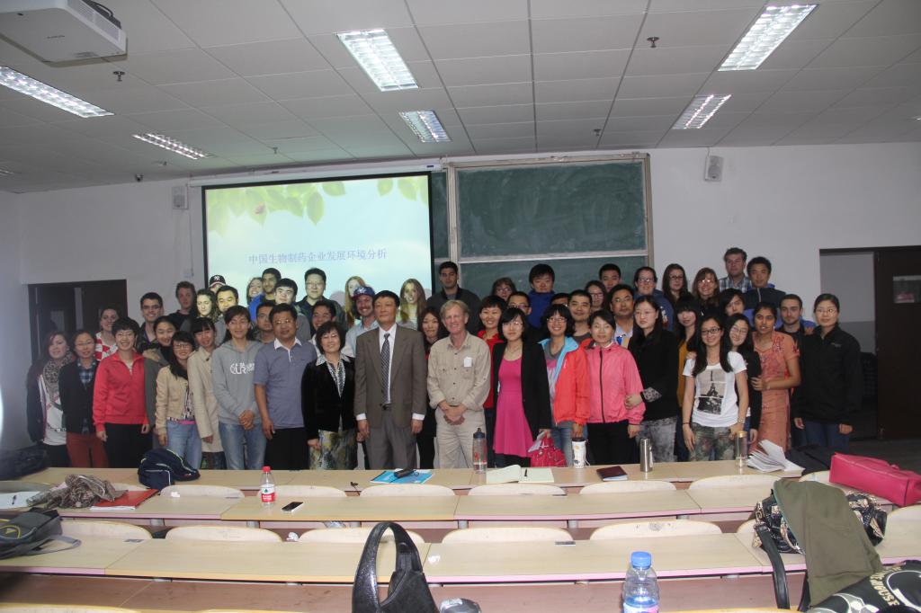 应青岛科技大学MBA教育中心邀请,5月18日,山东泰山学者曹杰教授为青岛科技大学2012级MBA全体学员及40多名加拿大来访学员带来题为“中国生物制药企业发展环境分析”的学术报告,报告会由袁晓莉教授主持。