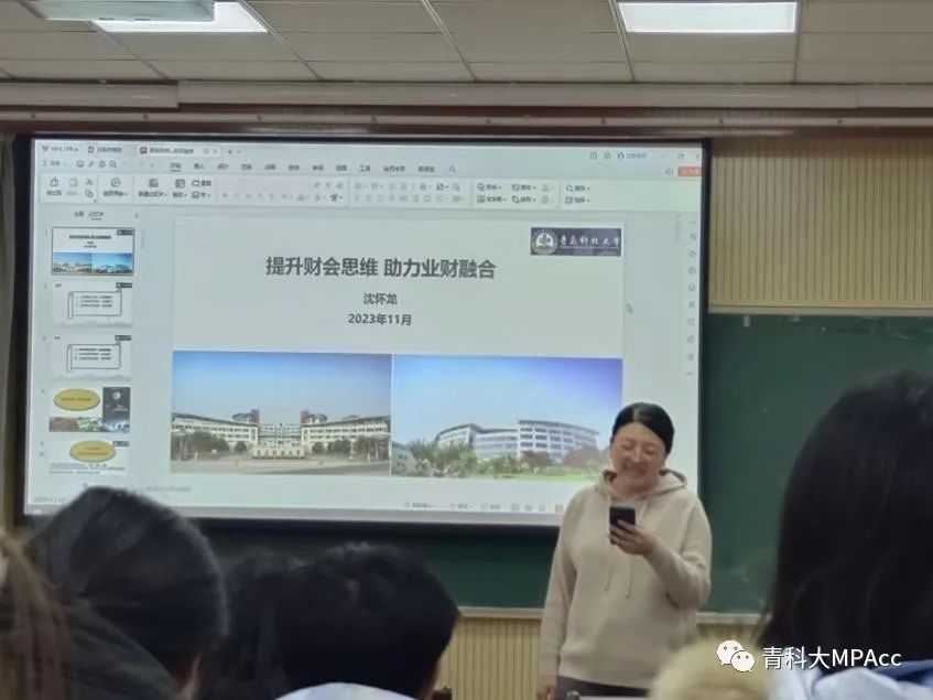 于11月23日下午,在经管楼504会议室组织开展学术讲座,邀请了上海市松江国有资产投资经营管理集团有限公司的沈怀龙总监为2023级MPAcc师生带来《提升财会思维,助力业财融合》的报告分享。本次活动由MPAcc教育中心主任孙兰兰老师主持,2023级MPAcc同学以及其他感兴趣的同学到场聆听了此次报告。