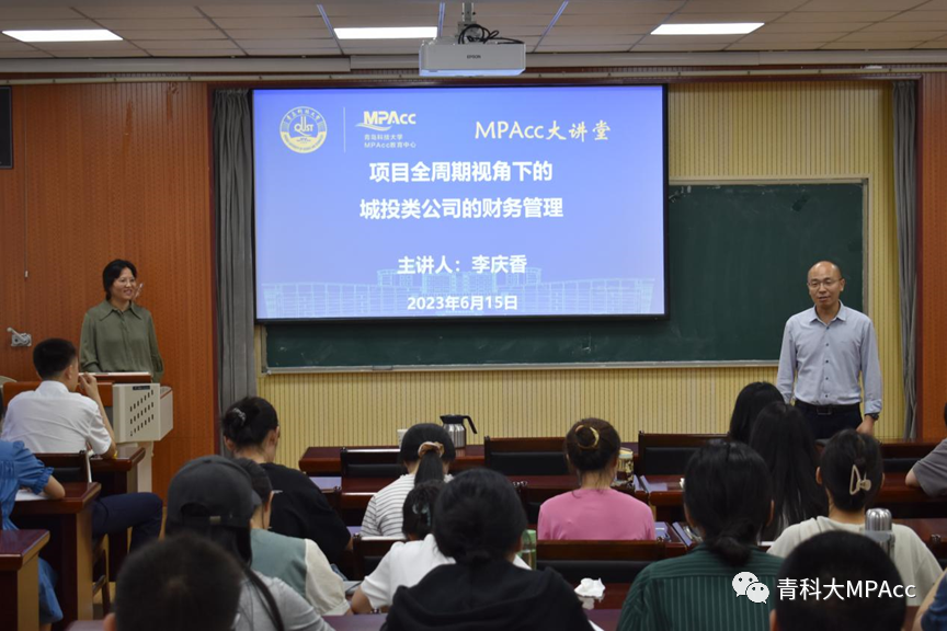 本次报告会主题是“项目全周期视角下的城投类公司的财务管理”,报告人是MPAcc校外导师、青岛城市建设投资(集团)有限公司总经理助理兼财务资金部总经理李庆香女士。