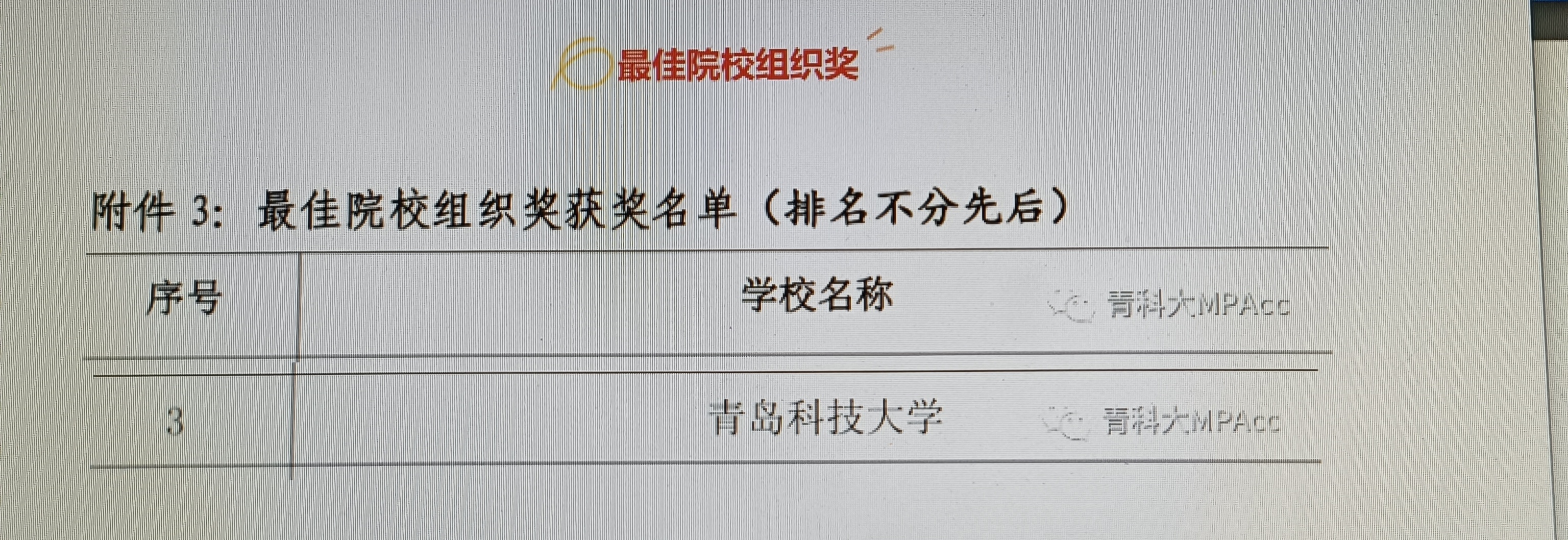 2023年5月12日至5月13日, 2023年全国高校商业精英挑战赛会计与商业管理案例竞赛山东省总决赛,MPAcc学子的作品在决赛作品中突出重围,斩获4个一等奖4个二等奖2个三等奖,青岛科技大学荣获最佳院校组织奖