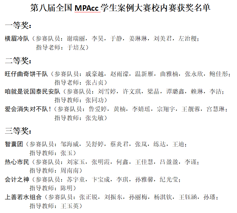 2022年(第八届)MPAcc学生案例大赛初赛校内赛获奖队伍揭晓