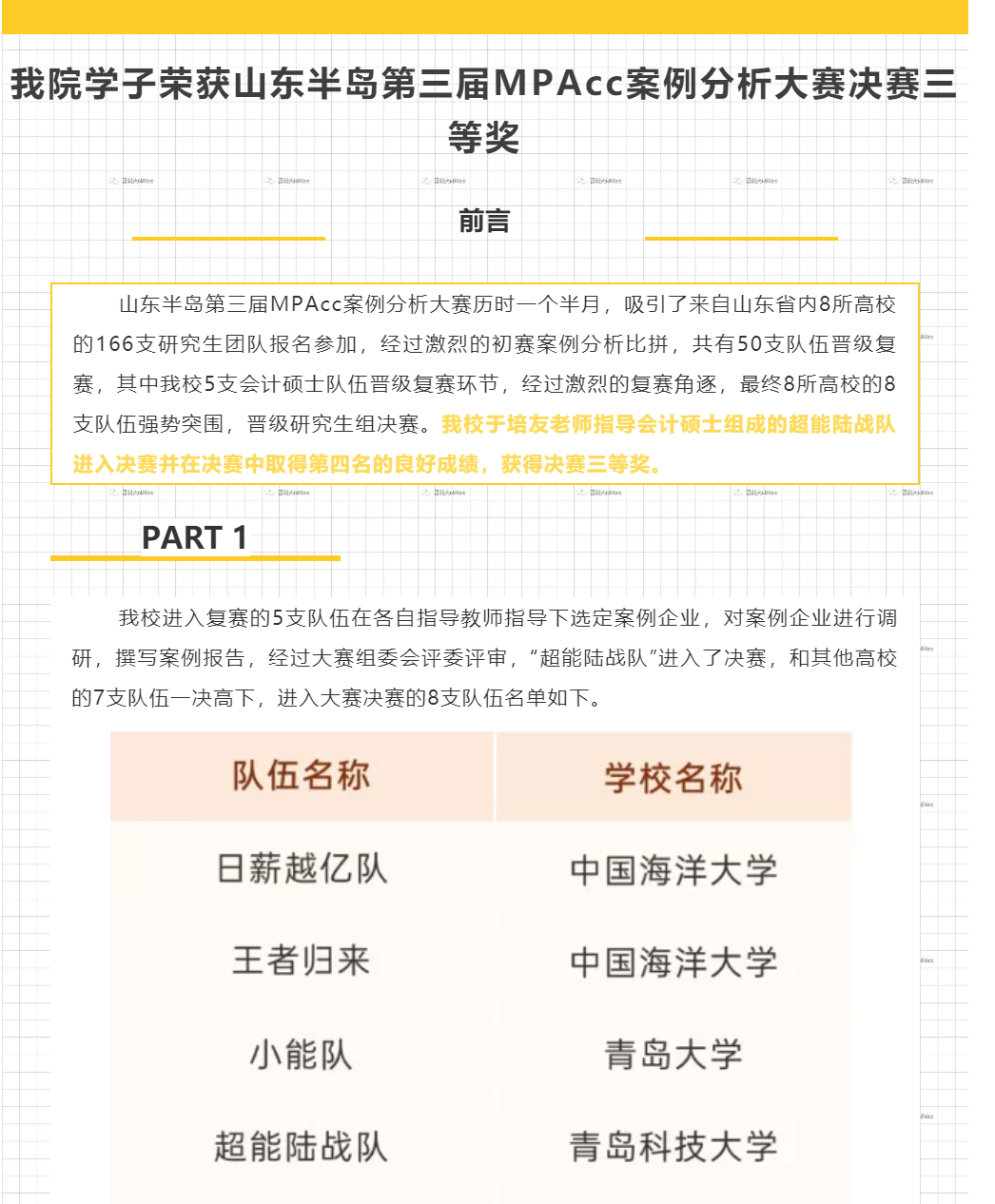 我院学子荣获山东半岛第三届MPAcc案例分析大赛决赛三等奖