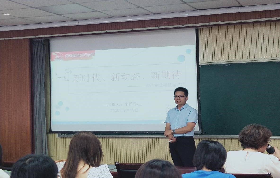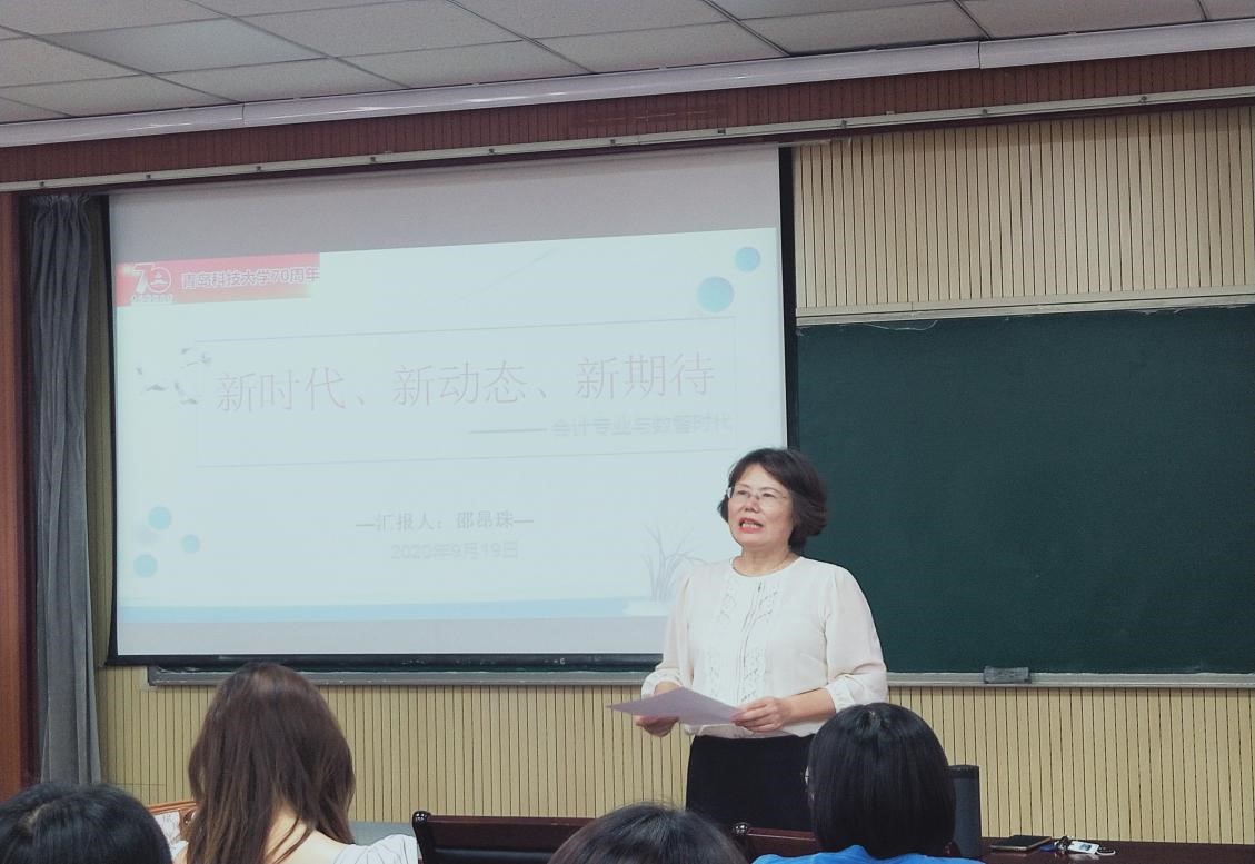2020年9月19日9点,全国高端会计人才、青岛科技大学校外导师邵昂珠老师,以“新时代、新动态、新期待——会计专业与数智时代”为主题,为我院师生带来了精彩的高端讲座。讲座由韦德国际