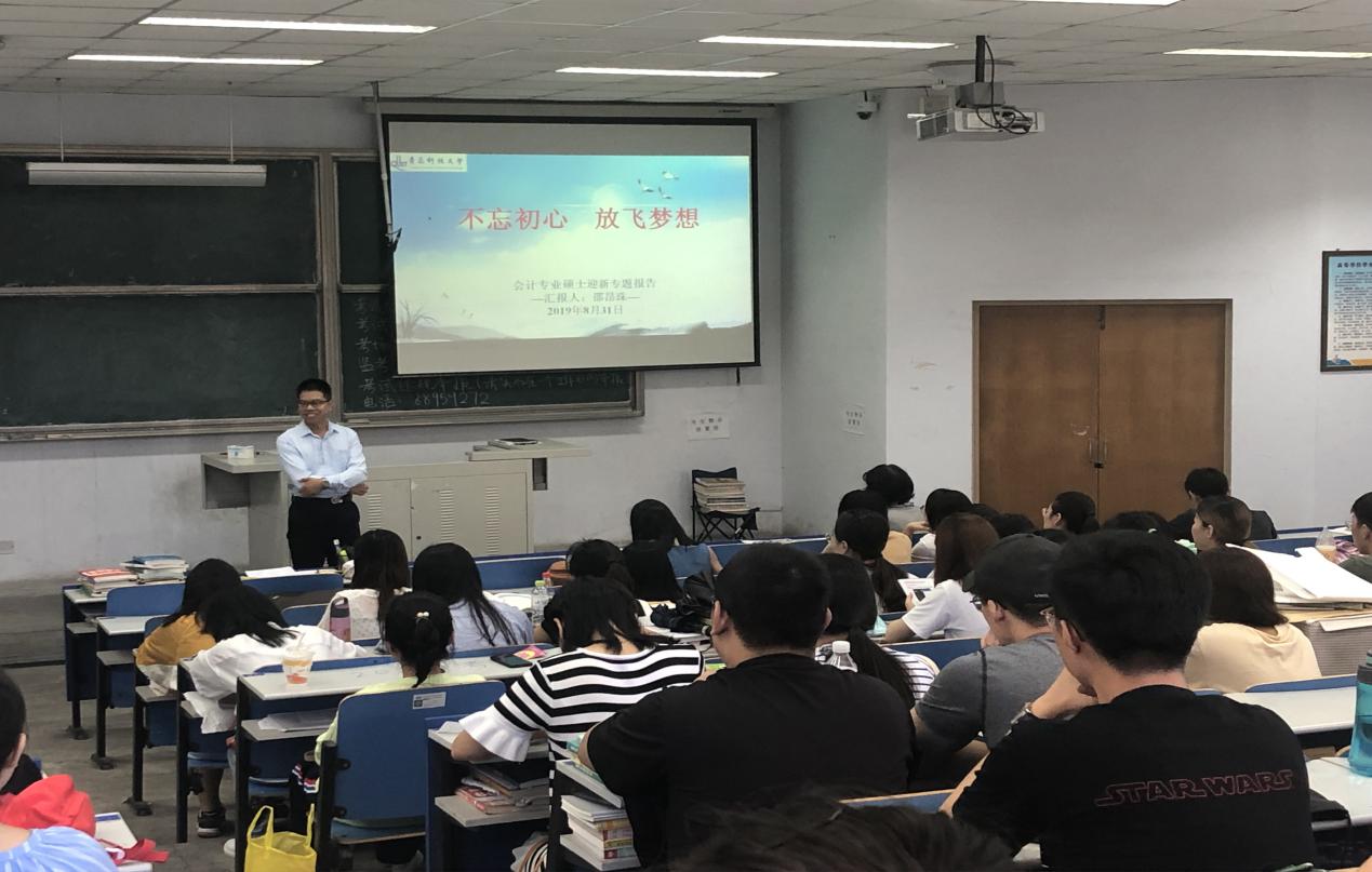 向2019级新生表示祝贺并对日后的学习发展寄予殷切希望。随后,由MPAcc中心刘树艳教授介绍了具体什么是Mpacc,并对同学们未来三年学习时间进行了规划安排。而后,各位导师依次向同学介绍了自己的研究方向。最后全体学生对自我情况以及想研究的方向进行了介绍。整场活动井然有序的进行,并在愉悦融洽的交流中顺利结束。