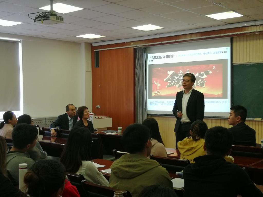 于经管楼505室与信永中和联合开展“信有大未来”2019年校园招聘会。信永中和合伙人青岛分部总经理宋进军一行、MPACC中心主任刘树艳老师、副主任于培友老师及部分应届毕业生参与本次招聘会。