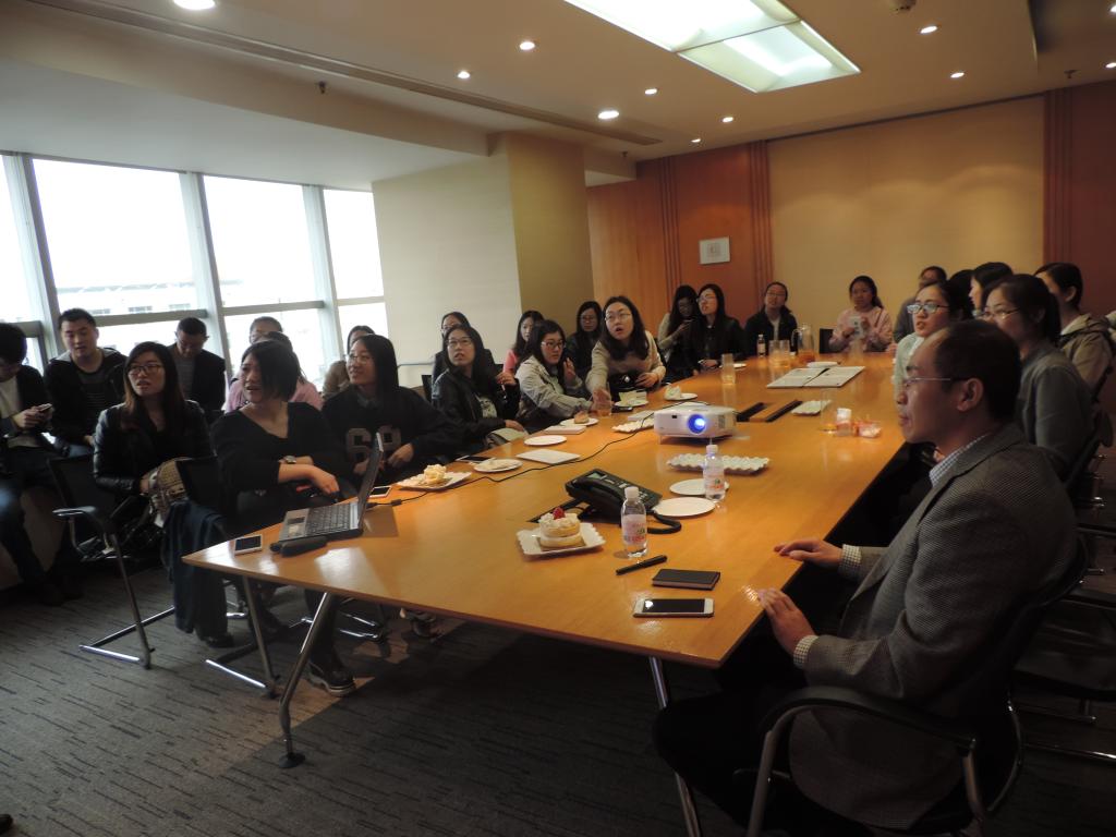 张经理向学生们介绍了毕马威事务所的建立、发展、业务、文化、管理等方面的基本概况,针对同学们感兴趣的招聘、薪资待遇、年轻会计师的培养机制等问题集中进行了说明。同学积极参与,热切提问,展现了我校MPAcc学生求知欲望高、不懂就要问的优良品格。最后,邵教授、于教授代表我校对毕马威事务所利用加班时间给我校学生讲解的有关问题表达诚挚的谢意。