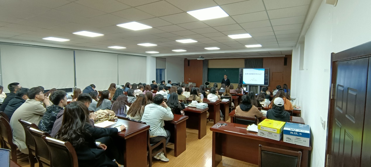 在班会讲解中,于老师结合自身的经历、以前年级同学在实习、就业中的一些事例进行讲解,于老师的讲话通俗、生动、有趣,同学们认真专注的听讲,教室里不时爆发出会心的笑声,不知不觉中两个多小时过去了,一场别开生面的班会给了同学们很多启迪和思考。